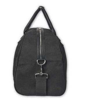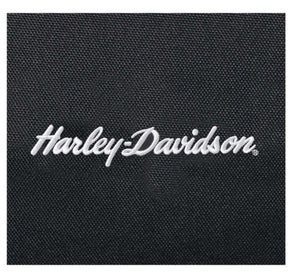 Durable exterior with stylish silver studs and leather trim. Roomy, lined main compartment. Multiple ways to carry with double handles and removable adjustable shoulder strap. Made from fashionable polyester. 3D scripted H-D logo. Size: 22" x 12" x 10".