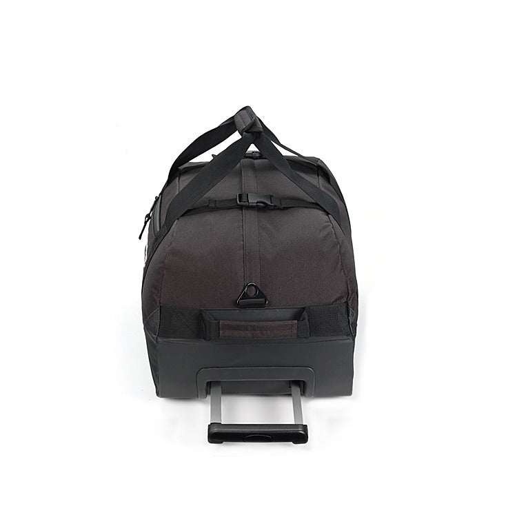 Featuring embroidered Harley-Davidson graphics along the side . Water-resistant, durable polyester-blend twill construction. Construction features include top-zip access to the main compartment, front horizontal-zip accessory pocket, hidden telescoping pull handle, removable shoulder strap, carry handle with handle wrap, fixed handles at both ends, two compression straps covering the top zipper and in-line skate wheels. Fits in most commercial airlines overhead compartments.