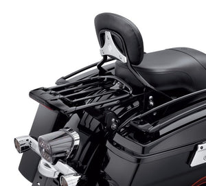 Fits '09-later Touring models equipped with 4-point Docking Hardware Kits. '09-later Touring models equipped with rigid-mount Tour-Pak® require purchase of appropriate H-D® Detachables™ Tour-Pak® Conversion Kit. FLHX, FLHXS, FLTR and FLTRX models require separate purchase of Antenna Relocation Kit or Hidden Antenna Kit. Some FLHRC EU registration plates may interfere with rack.