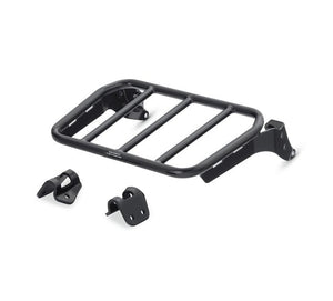 Smooth sweeping curves and the brilliant chrome or gloss black finish defines the look of this Sport Luggage Rack. Designed to complement both short and standard-height HoldFast Sissy Bar Uprights, this sleek rack adds a practical and stylish touch to the motorcycle.