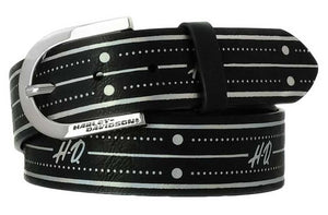 Constructed from high-quality genuine black leather, with a smooth texture. The face of this belt is covered with adorable shiny silver printed foiled design. Polished nickel finish on buckle. Interchangeable buckle lets you swap out for another belt buckle whenever you want. Width: 1.5".