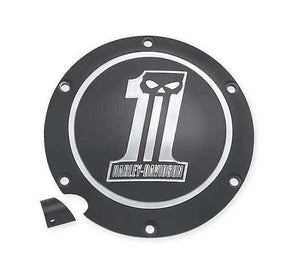 The famous Harley-Davidson® #1 graphic with a sinister twist. Machined from billet aluminum, these covers feature domed surfaces that are polished and black anodized to a rich satin sheen, and then remachined to expose the raw aluminum.