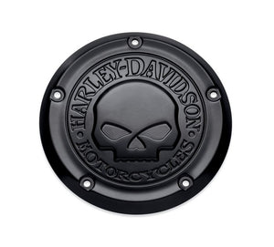 Penned at the hand of Willie G, the famous Skull Collection makes a shift to the dark side. Completely drenched in black, the raised skull and surrounding Harley-Davidson Motorcycle script adds a subtle ominous touch to your ride.