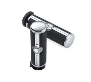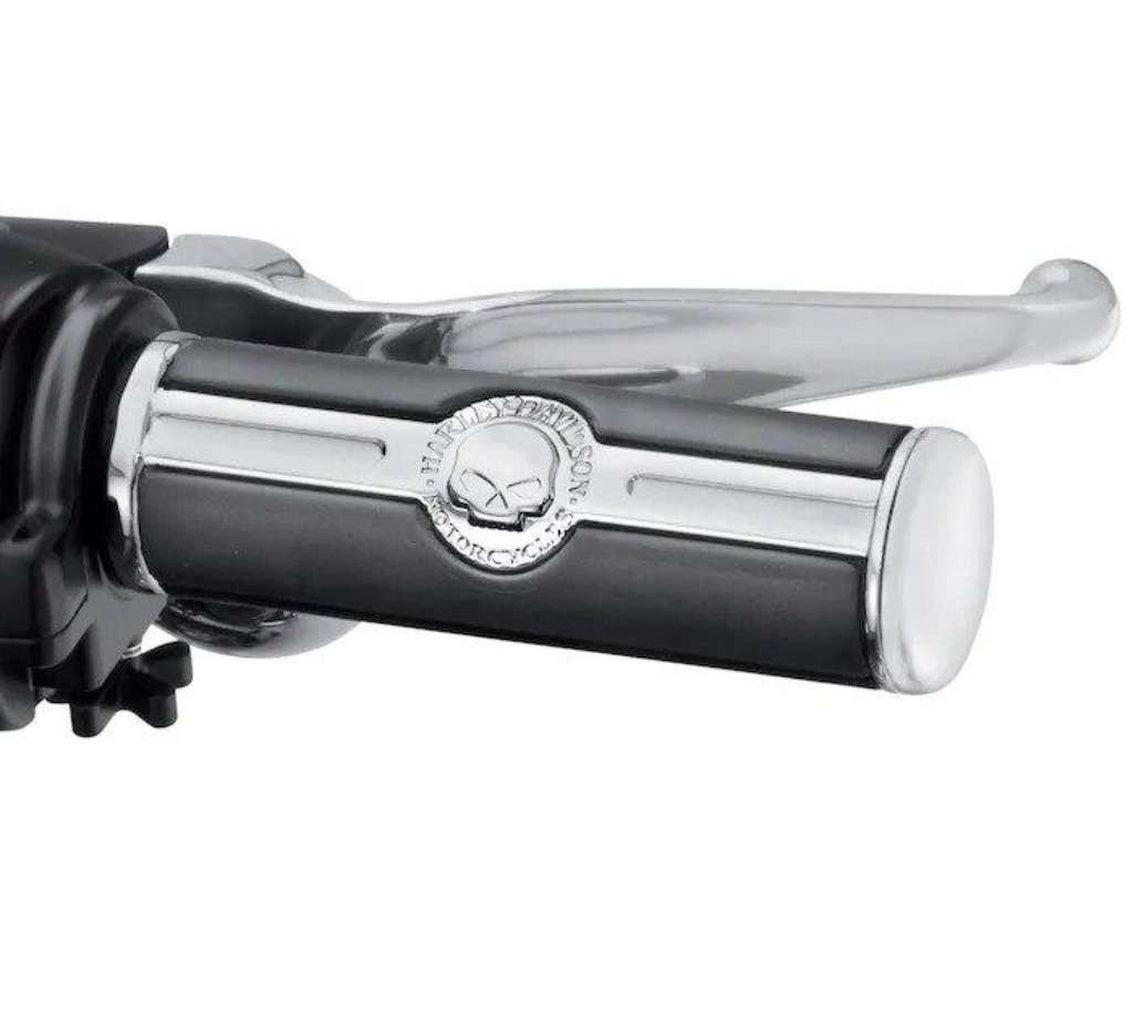 The deep black rubber pads are set against a brilliant polished and chrome-plated field to yield the dramatic appearance of the Willie G Skull Collection.