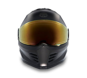 A maximum coverage favorite that celebrates Willie G. Davidson’s creative legacy is here on this H-D Division X15 Full Face Skull Graphic Helmet. Its low-profile shell is engineered to minimize both lift and turbulence for a smoother, quieter, and more stable ride. A ratchet system that pulls the face shield securely against the eye port, and a clearer view from advanced fog-free technology. It’s aesthetically designed with a slightly tinted face shield, a sleek matte finish, and Willie G’s acclaimed Skull graphic . Learn more in the specs below, then snag yours while supplies last.