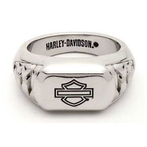 Awesome sculpted chain design on the side with a timeless Bar & Shield logo on the top. Made from durable, high-quality Stainless Steel. This ring is resistant to rusting and corrosion.