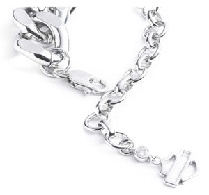 Absolutely stunning curb chain which is paved with cubic zirconia stones to a create gorgeous eye-catching design. Cubic Zirconia is a diamond simulant. Crafted from high-quality brass with silver plating. Adjustable 17" chain with a 3 inch extender. Secure lobster clasp. This stunning chain is the perfect accessory for any occasion.