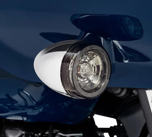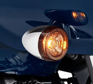 Fits domestic '14-later Softail (except '14-'15 FLSTF, FLSTFB, FXSB) , Dyna (except '14-'17 FXDF, FXDL, FXDWG, FXDBP, FXDP), Touring, Trike, XL, and '14-'15 CVO (except FXSBSE and '18-later FLDE and FXDRS) models equipped with bullet turn signals. Fits '22-later FXLRST. Does not fit models with plastic bullet turn signals.