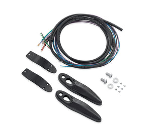 Required for saddlebag installation on certain Softail models, these elegant sweeping mounts move the turn signals and the side-mount license plate rearward on the fender struts, maintaining the stock lines.