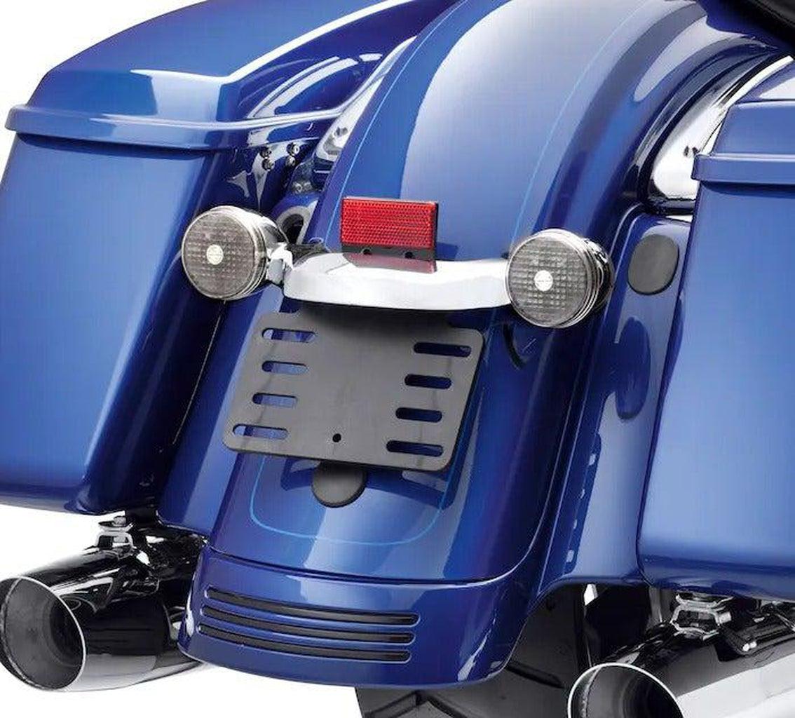 Fits '17-later FLHRXS and ’14-later FLHT, FLHX, FLHXS, FLTRX and FLTRXS models with Original Equipment rear bullet stop/turn/tail light bar.