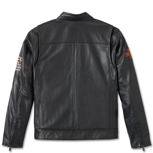 Crafted with midweight cowhide and two-tone washed for a unique look this 120th Anniversary jacket has a zipper closure, zipper welt hand-warmer pockets and an interior welt chest pocket. Action back with zippered sleeves make it super comfortable for riding. Embroidered patches and custom branding complete the sleek, classic style.