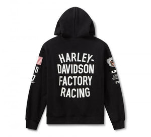 Be quick if you want one of these Factory Racing Hoodies. These Unisex hoodies are a limited edition. Once they are gone we cannot re-order them. With a relaxed fit and cut from 100% premium cotton terry in 460 gr, it features a double layer drawcord-free hood and kangaroo pocket with a premium rib-knit trim to help keep its shape at cuff and body. Additional details include double top stitching reinforcement added at all main seams, internal orange contrast color jersey tape at inner back neck-seam, and soft-hand printed graphics on the front, back and sleeves.