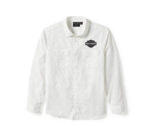 Made rugged yet breathable from all-cotton twill that’s washed for softness, it has a shirttail hem that looks great tucked in or out. This Harley-Davidson men’s button down, features flap chest pockets with a pen stall, plus a hidden snap-down collar that won’t flap around under riding gear. Featuring the iconic Bar & Shield on the front this shirt is a versatile style that’s ideal for work or play.