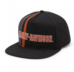 Stripes, colours and iconic Motorcycling converge on this Harley-Davidson Legacy Switchback Adjustable Cap. Made from a sturdy yet breathable cut of cotton twill, it has a snap back that adjusts to your head size for longwearing comfort. This men's cap stylishly features striping inspired by the open road plus their timeless graphics for a look that un-mistakenly Harley-Davidson.