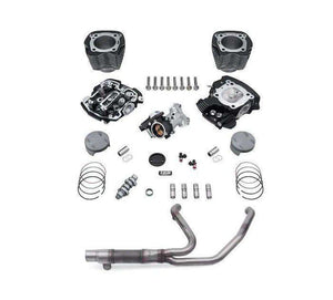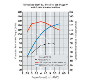 This Stage IV Kit was designed to deliver maximum horsepower – all the way to the redline. Features new CNC-ported heads with 1mm bigger valves and fully machined combustion chambers. Coupled with the kit's high-lift SE8-517 cam, high compression pistons and a 64mm throttle body and intake manifold, this combination delivers a thrilling 126 ft-lb of torque and 121 HP rear-wheel output when paired with Screamin' Eagle Street Cannon Mufflers. It’s designed to run wide open at high-end RPMs and provide a significant boost of torque from cruising speed. You’ll feel the difference as soon as you twist the throttle. When installed by an authorized Harley-Davidson Dealer within 60 days of the vehicle purchase, compliant kits do not impact the vehicle’s limited warranty. Kit includes: CNC Ported Cylinder Heads with CNC machined chamber and 1mm larger valves L93, Stage IV Timer Cover, SE8-517 High-Lift Cam, Forged High Compression Pistons, High Performance Cam Bearing, Tappets, 4.31" Steel Sleeve Cylinders, 64mm Throttle Body and Cast Manifold and High Flow Injectors (5.5 g/sec).