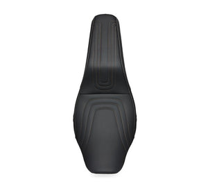 Take your custom style up a notch. This one-piece two-up seat features premium smooth black vinyl with a stitched-in pattern in a bold U pattern on the rider and passenger seating surface, a multi-panel design and contrasting stitching throughout.