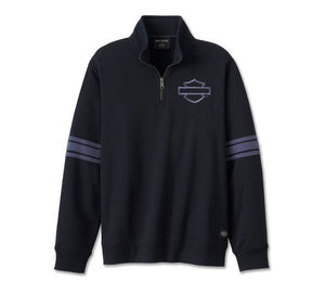 Timeless style meets endless comfort in this Harley-Davidson Bar & Shield 1/4 Zip Fleece. Built from a cotton/polyester blend, this men’s quarter-zip pullover delivers a relaxed fit. It features top-applied sleeve striping and embroidered graphics for an elevated look.