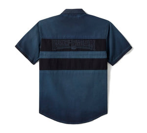 Bold, throwback Harley style meets longwearing comfort on the Iron Bond II Short Sleeve Shirt. Made rugged yet breathable from cotton twill that’s dye washed for a well-worn vibe. This men’s button down features a shirttail hem that looks great tucked in or out, and a hidden snap-down collar that stays put under riding gear. Its contrast piecing complements the montage of embroidered graphics inspired by the Harley-Davidson archives. The eagle on front debuted on the commemorative 1976 Model FLH-1200 Liberty Edition, while the back graphics mimic the H-D 1980s tank art.