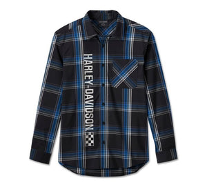 Plaid is retooled to hail the H-D racing heritage on The Bagger Long Sleeve Shirt. It’s crafted for lightweight comfort from cotton/poly poplin with a hit of spandex for added stretch. This men’s button-down delivers a relaxed fit and features a shirttail hem that looks great tucked or untucked. Finished with race-inspired graphics riding down the front for a look that’s unmistakably Harley-Davidson.