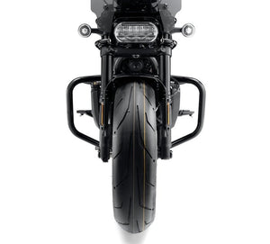 The strength of steel. This tubular steel engine guard is designed to help protect the Sportster® S motorcycle from cosmetic damage in the event of a stationary or low-speed tip-over.