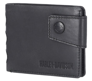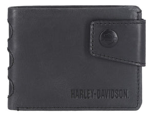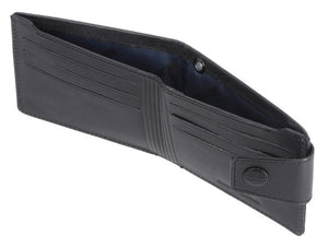 This Men's wallet is crafted from Genuine leather and has RFID protection to stop scammers from stealing your id etc. Matte black open Bar & Shield snap, with script logo on front.
