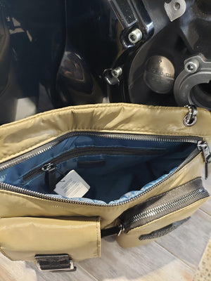 This multi-purpose Harley-Davidson bag will take you wherever you need to go. Great for everyday use, on the bike or off to concerts. Made from nylon, with gunmetal finish on metal. Logo web strap. Front zipper entry. 2 Exterior pockets. Exterior back side pocket. Interior zipper pocket. Adjustable shoulder strap. Size: 11" x 10".
