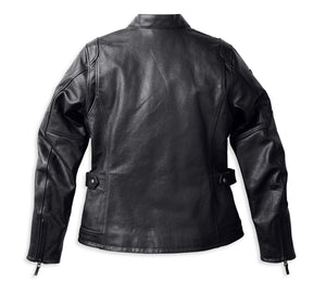 Featuring the iconic Bar & Shield on the left chest and Harley-Davidson emblems on the sleeves this ladies Enduro Leather jacket is made from midweight buffalo leather with a 100% mesh polyester lining. Body armour pockets are at the shoulders, elbows and back and 3M reflective material is added for visibility. Underarm and side grommets allow for airflow, action back and pre curved sleeves keep the rider comfortable. Adjustable snap tabs at the waist, zippered hand warmer pockets, one interior stash pocket and one interior zipped pocket. One smart looking jacket.