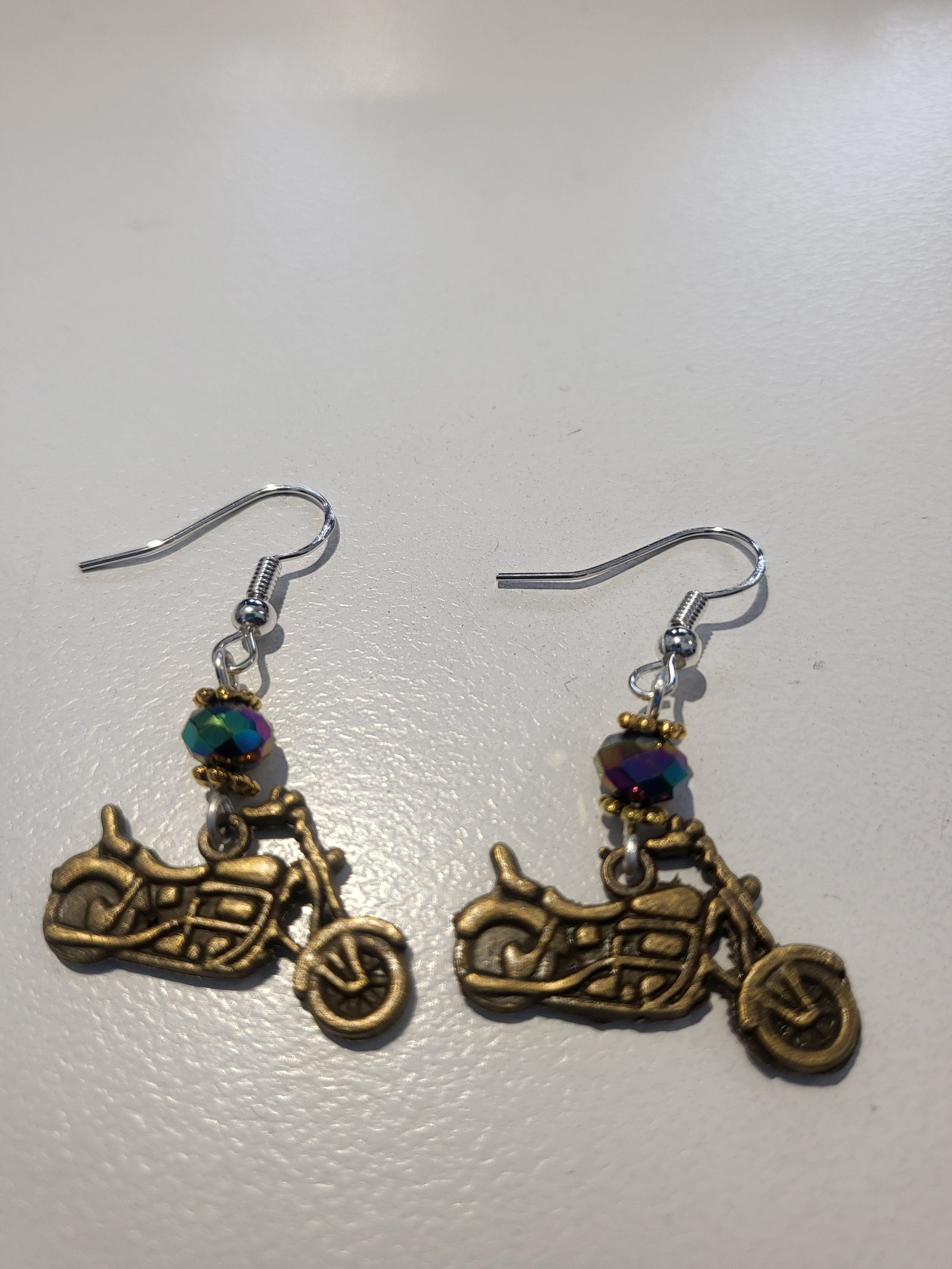 Earrings Brown Motorbike - Blue/Gold Crystals