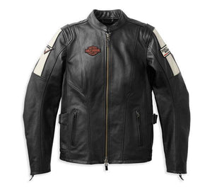 Featuring the iconic Bar & Shield on the left chest and Harley-Davidson emblems on the sleeves this ladies Enduro Leather jacket is made from midweight buffalo leather with a 100% mesh polyester lining. Body armour pockets are at the shoulders, elbows and back and 3M reflective material is added for visibility. Underarm and side grommets allow for airflow, action back and pre curved sleeves keep the rider comfortable. Adjustable snap tabs at the waist, zippered hand warmer pockets, one interior stash pocket and one interior zipped pocket. One smart looking jacket.