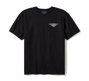 Limited Release Willie G Bar & Shield Sketch Art Ringer Tee. Its relaxed fit is cut from heavyweight cotton jersey that’s enzyme washed for a well-worn look and feel. This unisex t-shirt features a black contrast neckline and cuffs. It showcases genuine Willie G style inspired by the iconic Bar & Shield. Part of the Willie G Sketch Collection of authentically made in USA garments that feature hand-drawn and signed artwork by the iconic designer, Willie G. Davidson.