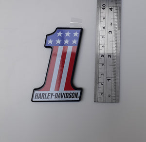 •Classic #1 Harley-Davidson design executed in red, white and blue colors