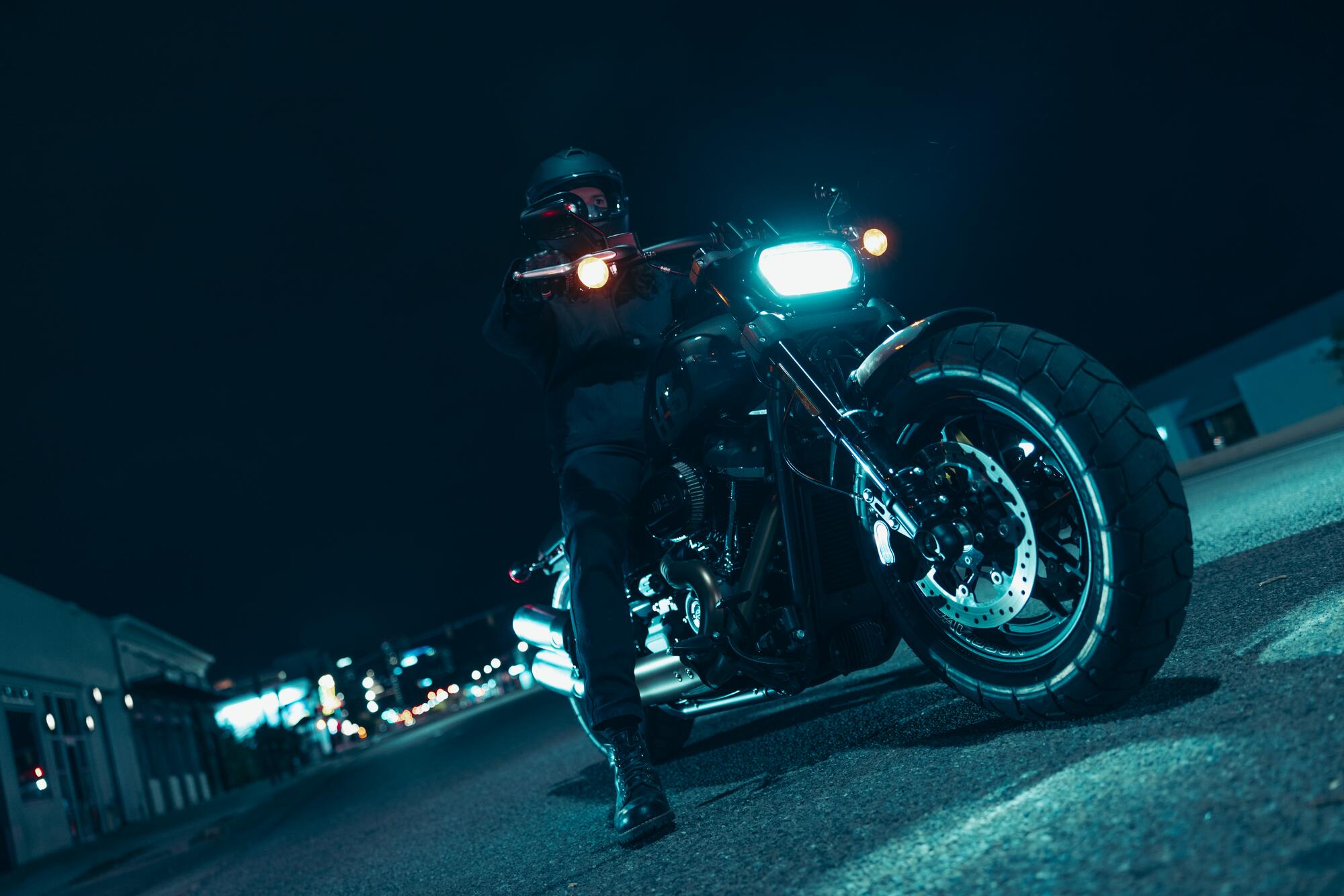 A street-eater with an appetite for power. Built with muscular style and performance.  A powerful, smooth-running engine with crisp throttle response and a pure, soul-satisfying rumble.  The Milwaukee-Eight engine is not short on power. And these high-performance dual disc brakes help you keep that power in check when you need to.  Big performance-inspired, upswept exhaust with a custom contrast finish.  A bold headlight design that gives you great visibility at night and during the day makes sure all eyes are focused on you.