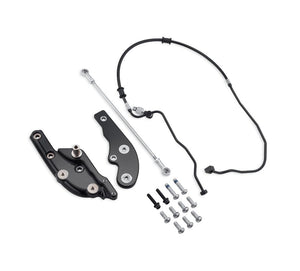 Includes new black painted brake and shifter mounting assemblies, extended shift rod, brake line and all necessary hardware