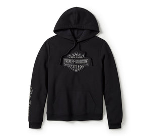 Add some shine to your collection with this Essential Bling Pullover Fleece Hoodie. It’s made to keep you cozy from a cotton/polyester fleece in a relaxed fit. Harley-Davidson stepped up its style with front and sleeve graphics adorned with embellishment. These look brilliant.