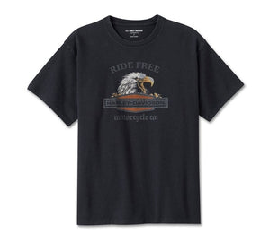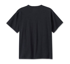 Casual, throwback style meets longwearing comfort on this Limited-Edition Ride Free Eagle Oversized Tee. This women’s t-shirt is crafted from breathable cotton jersey that’s pilled with a vintage pigment wash for a well-worn vibe. Its oversized silhouette looks great with skinny jeans or leggings. The front is finished with custom graphics inspired by Harley-Davidson archives. In fact, the stacked Bar & Shield logo featured here dates back to 1963 when it was extended horizontally to better fit the H-D motorcycle gas tanks.