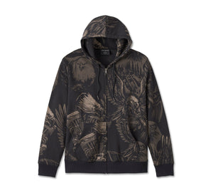 Engines and eagles come together in true 1980s style on this Limited-Edition Shadow Bird Zip-Up Hoodie. Its cotton/poly fleece blend in a relaxed fit features a jersey-lined drawstring hood and roomy pockets. Allover custom artwork that features free-spirited eagles with the Harley-Davidson Evolution engine that debuted in the early 1980s. This look is selling fast—snag yours now.