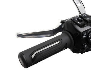 Combine style and comfort for cool morning or frigid night rides. These grips feature three heat settings (High, Med, Low) and are thermostatically controlled to ensure the selected temperature is maintained during the ride.