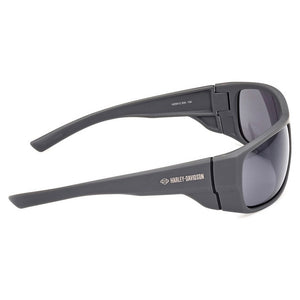 Men's sport wrap with the Bar & Shield and Harley-Davidson logo. Thick end piece for added side view protection. EN166 rated for on the bike use. Fits head sizes Medium to Large. Smoke Polycarbonate lenses. Hydrophobic, UV400.